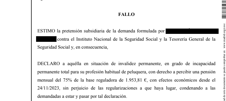Incapacidad Permanente Total por COVID persistente en peluquera